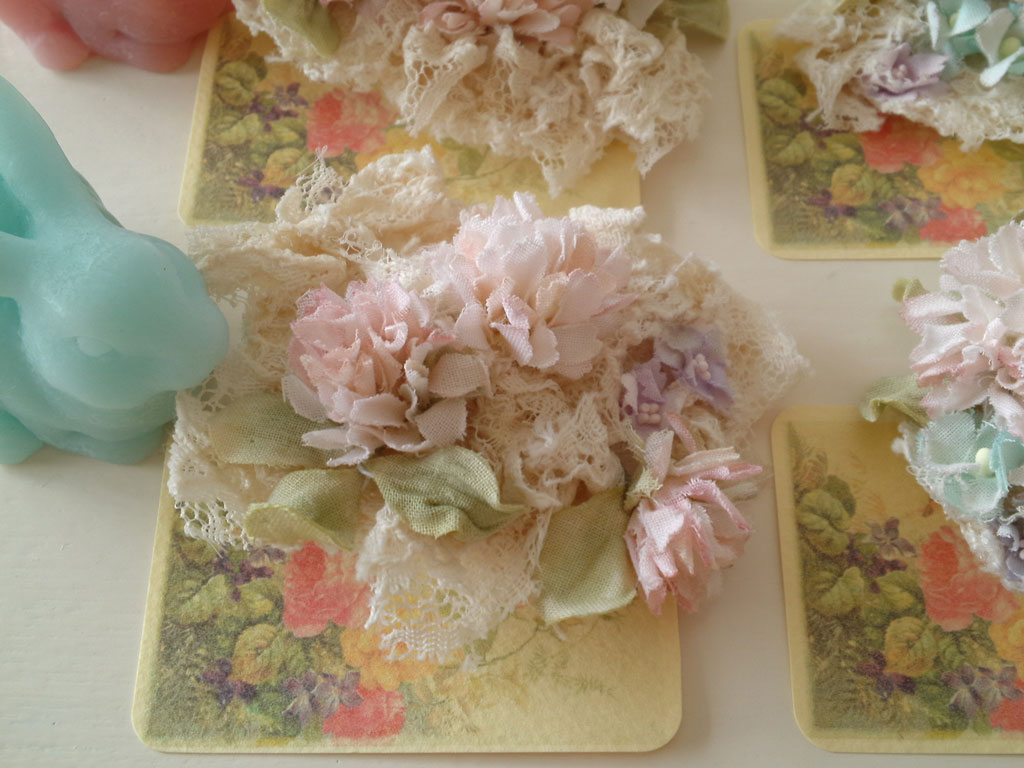 紅茶で淡く染めた生地とレースを