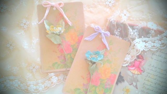 今回は初の試みで 本にちなみ栞を思わせる台紙を作って