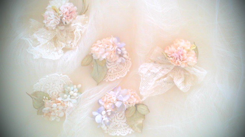 そのレースを使って お花をつくり またコトリさんのお店のかたすみへ