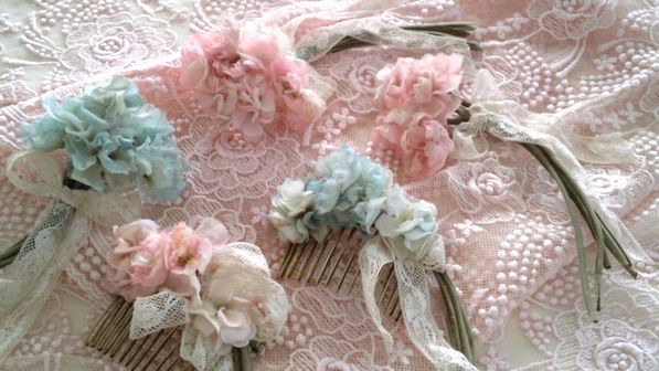 水色とピンクのお花をつくりました