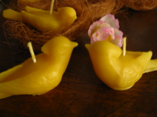 鳥をかたどったみつろうキャンドル
