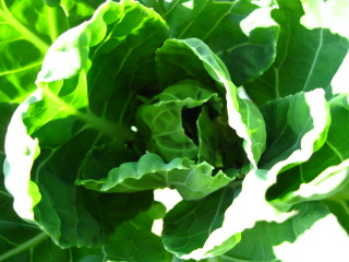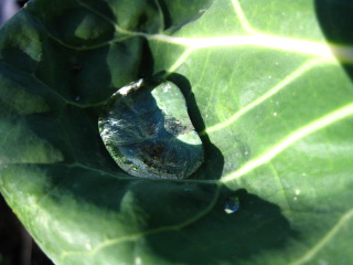 キャベツの葉にはドロップのような雨水