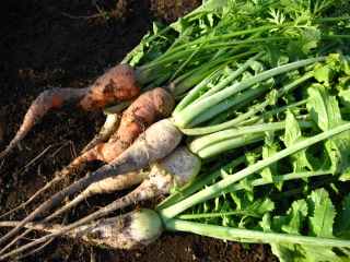 今日はにんじんとちいさな聖護院大根を収穫